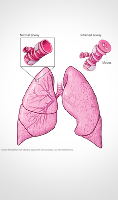 Asthma is a condition in which your airways narrow and swell and may produce extra mucus. This can make breathing difficult and trigger coughing, a whistling sound (wheezing) when you breathe out and shortness of breath.